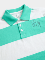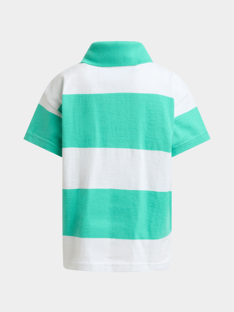 Elevate your little one's style with our Exact boy's green and white striped rugby golfer. Made from soft cotton for ultimate comfort. A versatile piece for any casual occasion. Keep him looking sharp effortlessly.