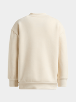 Stay snug and trendy with our comfy sweat top, complete with a convenient attached bag. Made from soft fleece fabric with ribbed cuffs, hem, and crew neck. Perfect for casual outings.