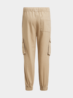 Our Exact boy's natural utility pants are a must-have for your little one! Made from durable cotton twill fabric with an elasticated waist and drawstring for a comfy fit. Features convenient utility and back pockets, and elasticated cuffs for a trendy look. These pants are perfect for any adventure!