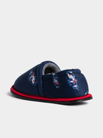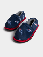 Step into cozy comfort with these navy slippers featuring a fun racing cars print. Designed for comfort with a fluffy fleece inner. Pair with the matching pj set for a cute and stylish look. Crafted for ultimate relaxation and lounging.