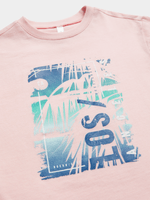 Keep your little one standing out in style with this pink graphic print t-shirt. Made from comfortable cotton, this tee is perfect for any casual occasion. Pair with shorts and sandals for a day filled with adventure.