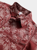 Get your little one looking sharp with our Exact red and white print shirt. Made from 100% cotton poplin fabric, this shirt is perfect for any occasion. Features a vibrant red bandanna print design, a chest pocket and button front. Pair with the with his favourite shorts.