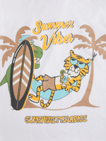 Keep your little one standing out in style with this white graphic print t-shirt. Made from comfortable cotton, this tee is perfect for any casual occasion. Pair with shorts and sandals for a day filled with adventure.