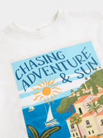 Keep your little one standing out in style with this white graphic print t-shirt. Made from comfortable cotton, this tee is perfect for any casual occasion. Pair with shorts and sandals for a day filled with adventure.