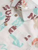 Get the coolest shirt for your little one with this white tropical sun printed shirt. Made from comfy cotton poplin fabric, featuring a fun sun print, chest pocket and short sleeves. Mix and match with his favourite bottoms or the matching shorts.