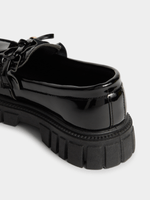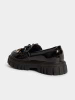 Step up her style game with these trendy black chunky loafers. Featuring a fun bow detail with gold accents, and a trendy chunky sole for comfort and style. These loafers are sure to become a favourite in her shoe collection.