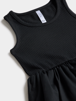 Get your little one ready for any occasion with this black ribbed bubble dress. Made with a comfortable ribbed vest top, and a poplin bubble skirt. This dress was made to make her feel like a princess.