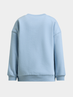 Stay cozy in style with our girl's blue graphic print sweat top. Made from fleece fabric, features a trendy graphic print, long sleeves and ribbed cuffs and hem. Ideal for mixing and matching with her favorite bottoms.