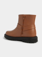 Get your little one ready to take on the day with these Exact brown chelsea biker boots. Featuring straps with gold metal details, and a side zip for an easy fit. Bring out her inner fashionista with these versatile boots.