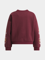 Keep your little mini me stylish and cozy in our Exact burgundy embroidered look sweat top. Made with brushed fleece fabric for ultimate comfort, featuring a cute floral sleeve detail. This sweat top is perfect for everyday wear.