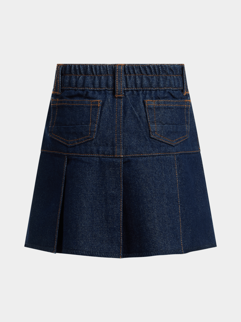 Get your little one ready to hit the playground, in style with this cute pleated denim skirt. Made with 100% cotton denim, featuring a cute pleated design, 4 pockets, a half elasticated waist, and front button for an easy fit.