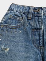Get your little one ready to rock in our barrel leg jeans from Exact! Made from 100% cotton denim, featuring a mid-wash, 5 pockets, and studded detailing for a touch of edge. Keep your fashionista looking fresh.