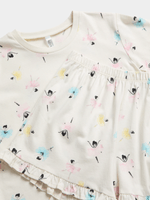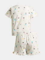Get your little girl ready for a good night's sleep with this adorable ballerina print sleepwear set. Made from soft cotton, this set features a ballerina printed top and shorts with ruffle hem. Perfect for lounging or snoozing.