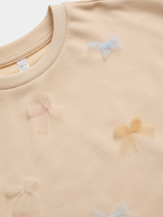 Elevate your little one's wardrobe with our cute natural boxy top. Made from fleece fabric, this top features colourful 3D bows and a boxy fit. Perfect for mixing and matching with her favorite bottoms. A cute and stylish addition to any wardrobe.