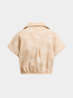 Elevate your little one's wardrobe with our natural pineapple print front tie shirt. Made from soft and breathable linen blend fabric, featuring a front tie detailing and button up, this shirt is perfect for all-day comfort. Mix and match with her favorite bottoms or the matching shorts for a stylish look.