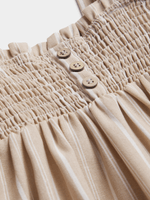Keep your little one stylish in our natural & white striped dress! Made from linen blend fabric, featuring a smocked bodice for a stylish touch, this dress is perfect for any adventure.