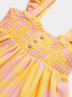 Keep your little one stylish in our orange tropical print dress! Made from linen blend fabric, featuring a smocked bodice with buttons, and ruffled straps, this dress is perfect for any adventure.