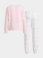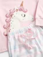 Keep your little one snuggled up in style with our Exact girl's pink and blue graphic print sleepwear set. This set features a unicorn graphic print top and check printed pants. Perfect for lounging or snoozing.