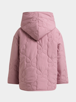 Stay warm in style with our Exact girl's pink quilted jacket. This cute jacket features a quilted butterfly pattern, front pockets, hood, and button up closure. Perfect for adding a pop of color to any outfit.