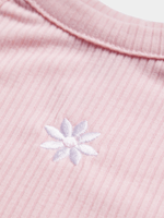 Get the perfect pink tank top for your little fashionista! Made with a ribbed fabric, featuring a cute embroidered flower design. Perfect for mixing and matching with her favorite bottoms this Summer.