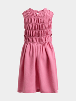 Get your little one ready for any special occasion with this textured smocked dress in a vibrant pink from Exact. This dress features textured seersucker fabric, side bow detailing that adds a sweet touch, and a smocked bust. Ideal for your little fashionista!