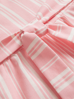 Dress your little one in style with this cute pink and white striped jumpsuit. Featuring a linen blend fabric, flutter sleeves and a tie belt. Keep your child looking fashionable and comfortable all day long.