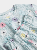Get your little one ready to make a statement in this sage textured floral print set. This set features textured fabric, a stylish ruched top with side ties, and shorts with an elasticated waist. Perfect for playdates or outings.