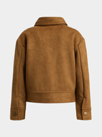Introducing our super soft tan shacket from Exact, perfect for chilly days! Made with suede like fabric, this jacket shacket features long sleeves with adjustable cuffs, chest pockets, and a button up closure. Perfect for layering and adding a touch of chic to any outfit.