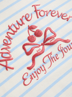 Get your mini-me dressed in style with this white and blue striped t-shirt with a fun graphic print. Made from cotton single jersey fabric, it's perfect for all-day comfort. Pair with any of our bottoms for a fun look that's as unique as your little one.