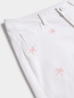 Get your little one ready for summer with these trendy white denim shorts! Made with 100% cotton denim, featuring 5 pockets, belt loops and pink palm embroidery details. Pair with a statement tee and sandals for a cuteness overload.