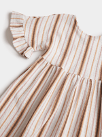 Dress your little one in style with this white and natural striped textured dress. This dress features ruffle drop sleeves and a crossover v-neck for a touch of whimsy. Add some fun to her wardrobe with this must-have dress.