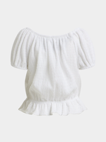 Elevate your little one's wardrobe with this white textured peplum top. This top features a textured fabric, elasticated waist and neckline, and a flattering peplum silhouette. Pair with your favorite bottoms for a cute look.