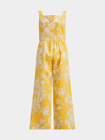 Dress your little one in style with this yellow tropical print jumpsuit. Featuring a linen blend fabric, front buttons and a shirred back detailing. Keep your child looking fashionable and comfortable all day long.