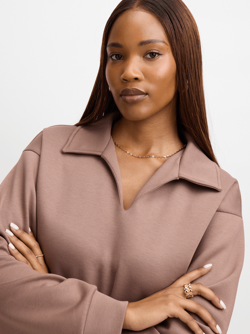 Get that effortlessly cool look with our Exact beige johnny collar sweat top. Made from soft touch fabric for ultimate comfort. Features a relaxed fit with a johnny collar design. Pair with the matching pants or jeans. Perfect for casual days out.