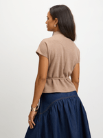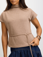 Introducing our Exact beige turtle neck top. This top features a chic turtle neck design with a tie belt. Perfect for pairing with your favorite bottoms or skirt.