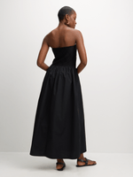 Get ready to stand out in this stunning black anglaise combo dress! Made from poplin cotton fabric, this dress features anglaise on the bodice, a strapless design, and a poplin skirt. Feel confident and elegant in this must-have wardrobe staple.