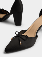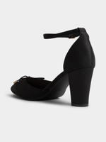 Step out in style with these chic black block heels from Exact. Featuring an adjustable ankle strap, pointy toes, and a bow detail. Perfect for adding a touch of elegance to any outfit.