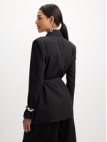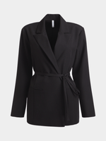 Elevate your wardrobe with our Exact black belted blazer. This chic piece features a flattering belted waist and sleek design. Easily dressed up or down, this blazer is perfect for any occasion. Pair it with any pants for a smart boardroom look we love.