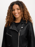 You need this versatile Exact biker jacket in classic black in your wardrobe. This jacket features a collar with stud details, long sleeves with zips, belted waist, and a zip pocket for added convenience. Perfect for adding a touch of attitude to any outfit.
