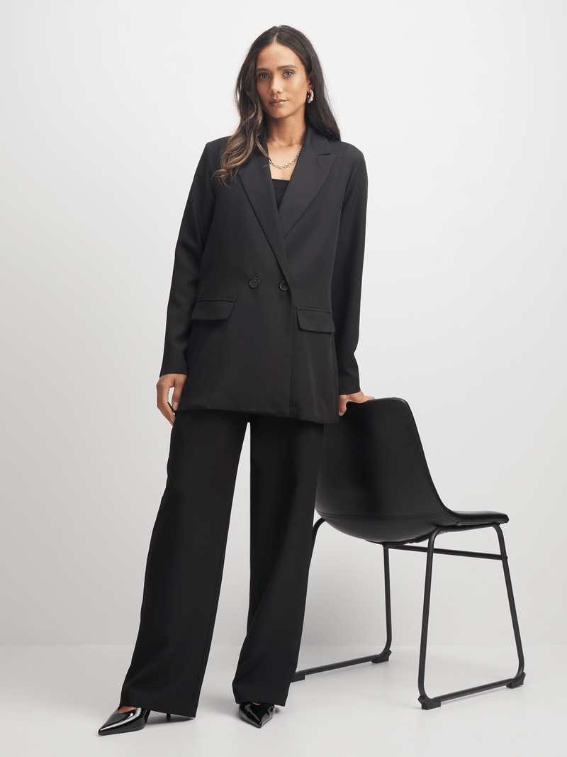 Introducing the Exact black boyfriend blazer, a versatile wardrobe staple for any occasion. This blazer features a relaxed fit and classic design. Pair it with your favorite bottoms and accessories for a chic look.