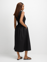 Look effortlessly chic in this Exact black combo dress from Exact. Made from 100% cotton poplin fabric, featuring side pockets and a midi length. Feel fabulous and confident in this versatile piece.