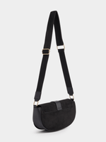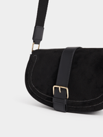 Elevate your outfit with this chic crossbody bag featuring a suede like inset and a stylish gold buckle. This bag is the perfect addition to your wardrobe. With a timeless design and adjustable strap, it's a versatile piece for any occasion.