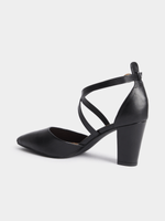 Step out in style with these Exact black strappy heels. Featuring a trendy block heel and crossover straps, these heels are perfect for any occasion. Step out in chic fashion with these trendy, comfortable and versatile shoes.