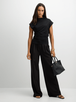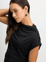 Elevate your style with this chic black draped top from Exact. This top features a flattering draped design that adds a touch of sophistication to any outfit. Perfect for any occasion, simply pair with your favorite bottoms for a chic look.