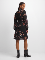 Look effortlessly chic in this black floral dress. Features a stylish frill design and a beautiful floral print. Perfect for any occasion, this dress is a must-have addition to your wardrobe.