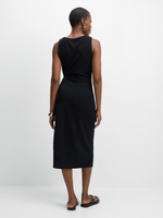 Get ready to turn heads in this black front tie dress. Made from cut and sew fabric, this dress features a stylish tie front design, and a flattering silhouette. Elevate your look effortlessly with this chic dress.