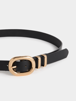 Elevate your outfit with our Exact black and gold belt. Made from PU, this belt features an elegant oval buckle that adds a touch of sophistication to any look. Perfect for accessorizing and adding a stylish flair to your wardrobe. Easy to mix and match with any outfit.