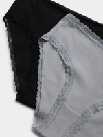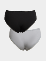 Indulge in comfort with the Exact women's 2-pack bikini underwear. Made from soft rib in 100% cotton fabric, featuring a lace trim. These panties are perfect for everyday wear. The set includes two pairs in black and grey. Stay comfortable all day long!