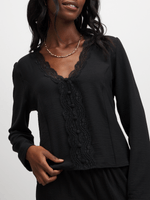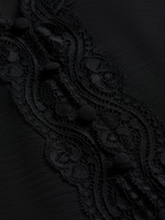 Elevate your wardrobe with our black lace trim blouse - a versatile piece for any occasion. This blouse features delicate lace detailing along the neck and front, with button detail. Pair with your favorite bottoms for a chic look.
