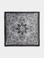 Elevate your style with our Exact black and white paisley print satin scarf. This is the perfect accessory to add flair to any look. Ideal for adding a touch of style to your wardrobe.